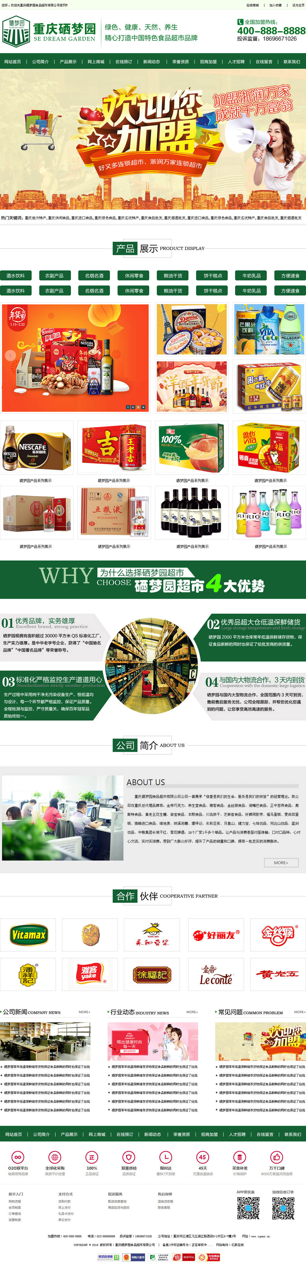 重慶硒夢園食品超市有限公司公司一直秉承“信譽是我們的生命,服務是我們的宗旨”的經營理念。我公司在重慶總代理品牌有:金帝巧克力、養生堂食品、雅客食品、金絲猴食品、俏嘴巴食品、正中苦蕎食品、奧斯特食品、黃老五花生糖、佳寶食品、豐熙食品、川島餅干、芝麻官食品、好牌阿膠棗、福馬蛋糕、愛尚菲蛋糕、澳崎進口食品、維他麥、納溪泡糖、潘祥記、永和豆漿、月皇山、健力寶、七娃飲品、完達山飲品、藍劍飲品、中糧集團長城干紅、雪花啤酒,28個廠家1千多個單品。讓產品與消費者面對面接觸,口對口品味,心對心交流,實對實消費。受到廣大群眾好評,提升了產品的銷量和口碑,擁有一批忠實的消費群體。