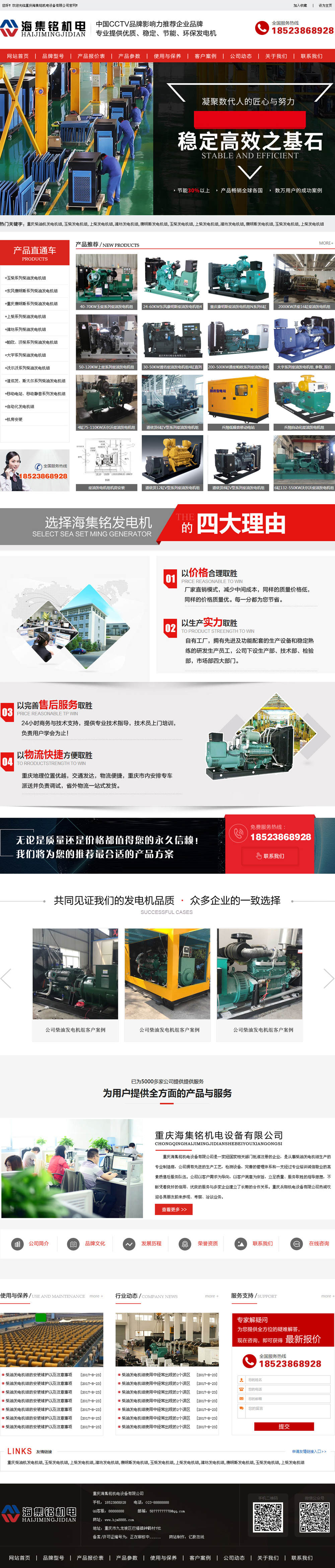 重慶海集銘機電設備有限公司是一家集柴油發電機組制造,銷售,服務為一體的專業企業.公司采用國內外先進技術,擁有雄厚的科研生產技術,產品深受廣大客戶青睞.我們不斷致力于自身產品技術的發展,長期投入大量資金在技術設備及現代化管理的更新上,年產量多。